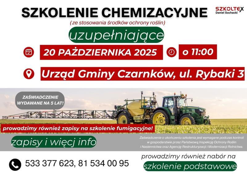 Obowiązkowe szkolenia chemizacyjne Gmina Czarnków...