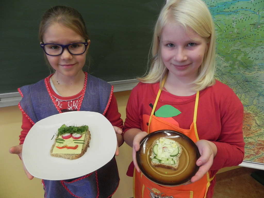 Dnia 06 listopada 2015 r. uczestniczyliśmy w akcji „Śniadanie Daje Moc”. Na początku pani dyrektor Beata Maszewska powitała nas i zadała kilka pytań na temat zdrowego odżywiania. Następnie wyświetlono nam krótką prezentację o zdrowym śniadaniu. Każdy był przebrany za owoc lub warzywo. Na pamiątkę tego dnia dostaliśmy naklejki z napisem „Śniadanie Daje Moc”. Następnie rozeszliśmy się do klas, w których przygotowywaliśmy zdrowe kanapki o różnorodnych wzorach. Były zwierzątka, rozmaite stworki, a nawet pociąg.