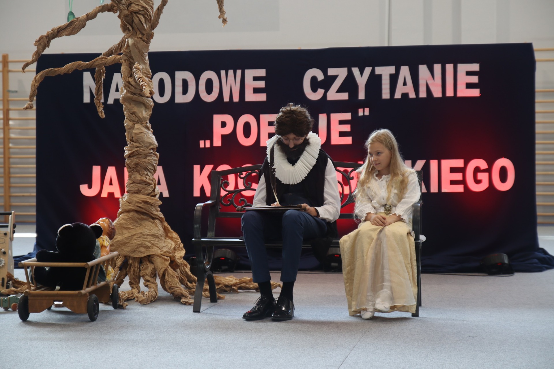 Druga część Narodowego Czytania poezji Jana Kochanowskiego miała bardzo refleksyjny charakter. Nauczyciele oraz zaproszeni leśnicy i pracownicy Nadleśnictwa Sarbia zaprezentowali wybrane utwory, wśród których znalazły się pieśni, fraszki i treny. Na koniec poetyckiej uczty przemówił sam Jan Kochanowski, który siedząc pod lipą, przyglądał się bawiącej Urszulce i wymieniał zalety tego niezwykłego drzewa. Lipa, według poety okazała się być symbolem radości, gościnności i ciepła, tak jak miód z lipowych kwiatków stał się słodkim podsumowaniem Narodowego Czytania poezji Jana z Czarnolasu w naszej szkole.
